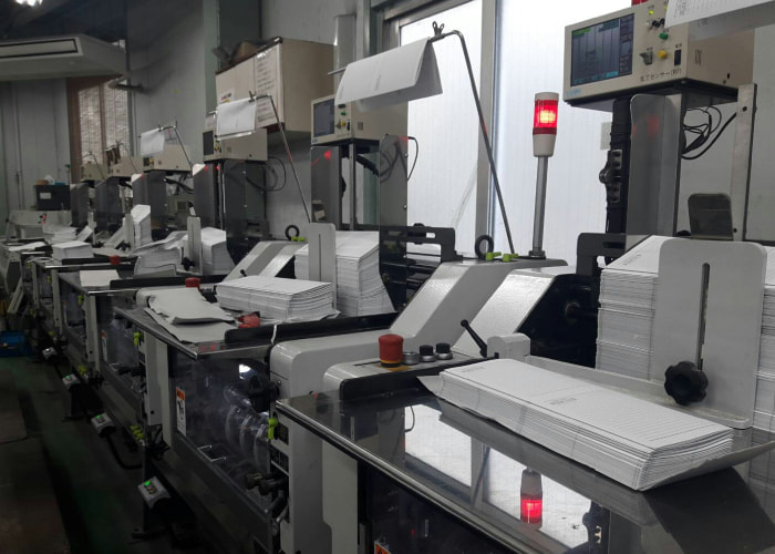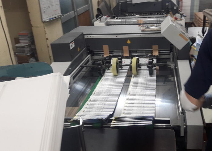 松岡製本の設備紹介 折機 印刷物を自動で折り畳むための機械です 画像をクリックすると拡大します 中綴機 中綴じ製本という方法で冊子を製本するための機械です 画像をクリックすると拡大します くるみ機 本文を糊で背表紙部分に接着し、表紙でくるむように貼り付けて製本する機械です 画像をクリックすると拡大します