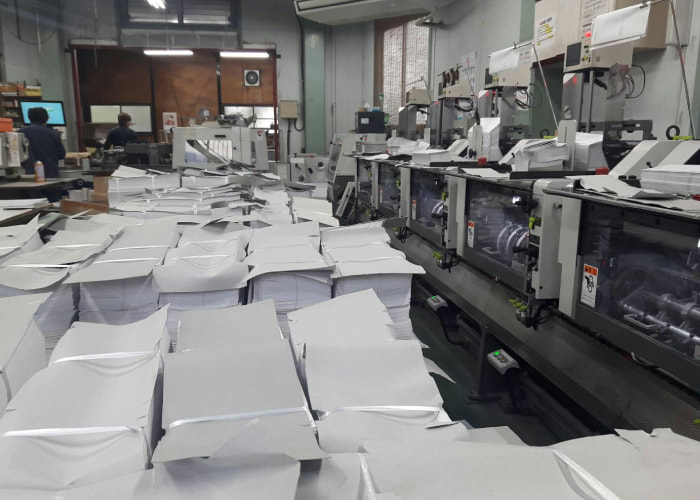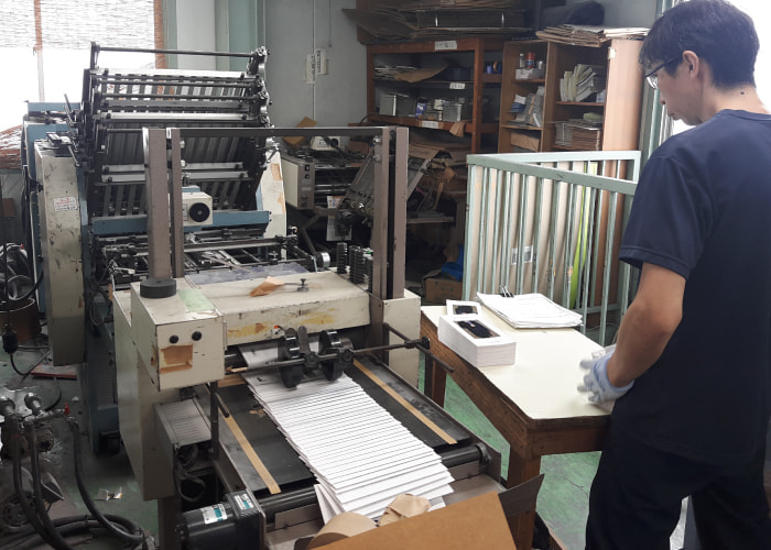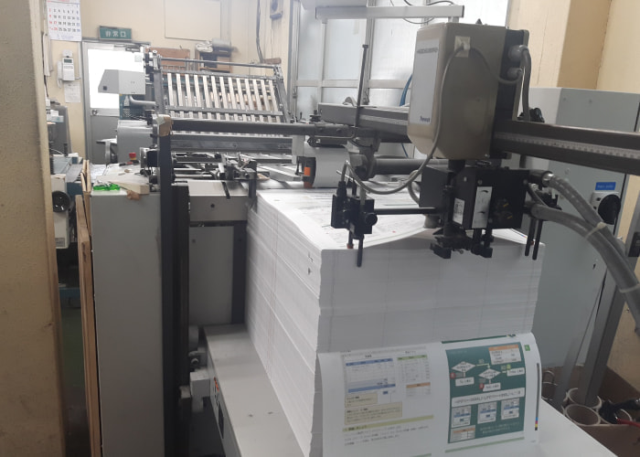 松岡製本の設備紹介 折機 印刷物を自動で折り畳むための機械です 画像をクリックすると拡大します 中綴機 中綴じ製本という方法で冊子を製本するための機械です 画像をクリックすると拡大します くるみ機 本文を糊で背表紙部分に接着し、表紙でくるむように貼り付けて製本する機械です 画像をクリックすると拡大します